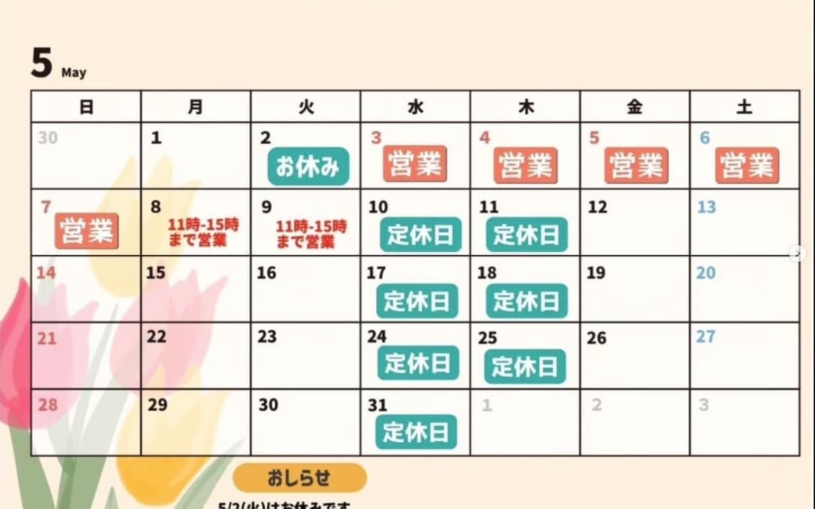 | 営業時間 | 11:00〜18:00(ラストオーダー17:00) |